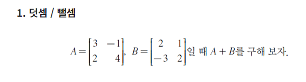- 일반적인 배열의 덧셈은 각 자리의 숫자를 서로 더하여 표시한다.
