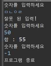 - 이 프로그램은 -1 입력 전까지 비정상 종료가 없는 프로그램