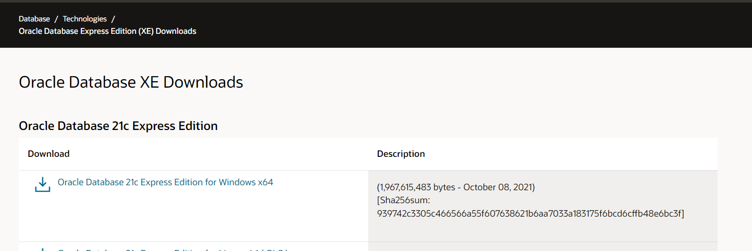 - 오라클 홈페이지에서 오라클 데이터베이스 xe 21c를 설치한다.